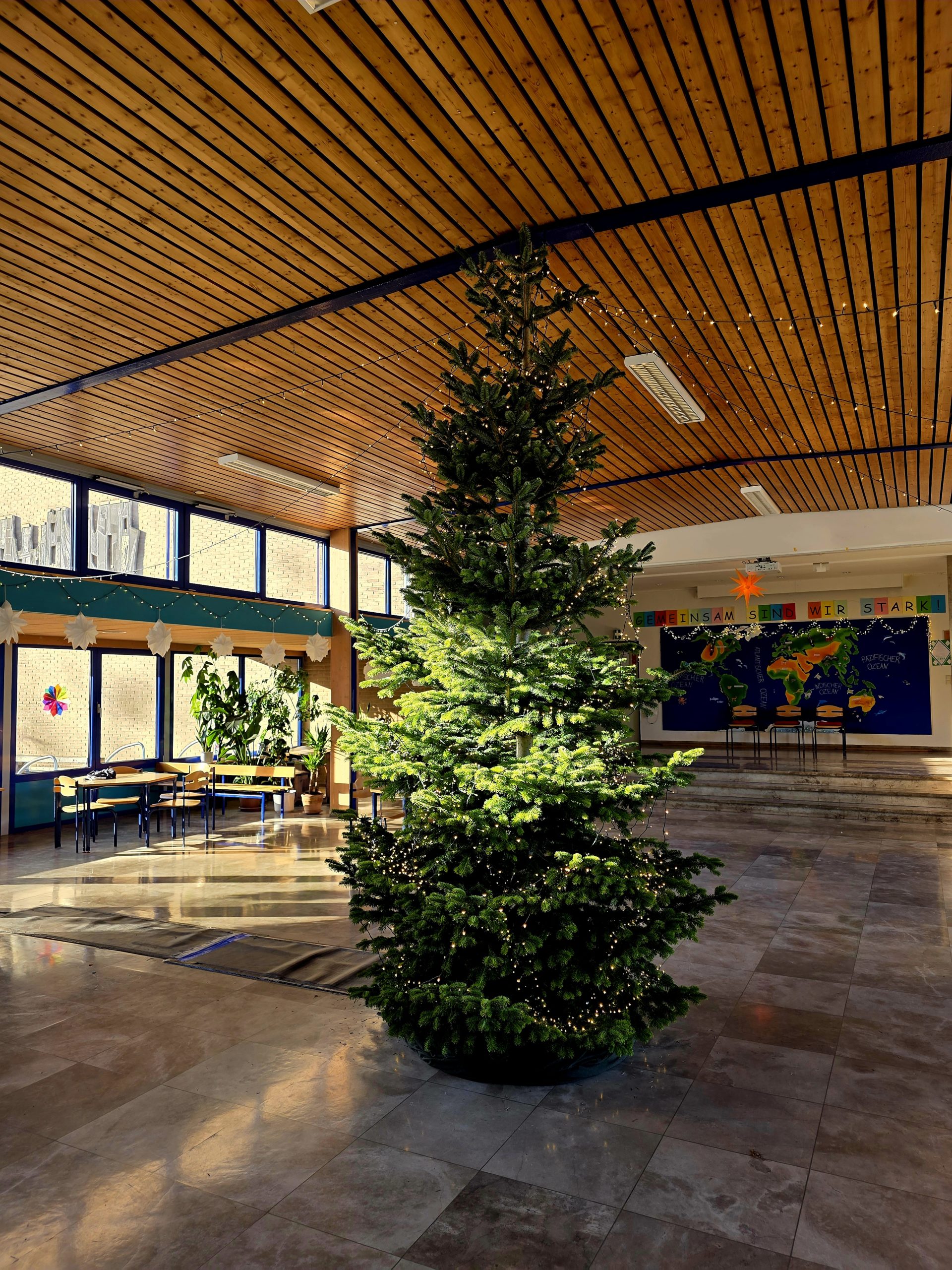 Anlässlich der Adventszeit wurde unsere Eingangshalle festlich geschmückt. Bei uns strahlen jetzt die Lichter um die Wette, so macht Schule noch mehr Spaß.